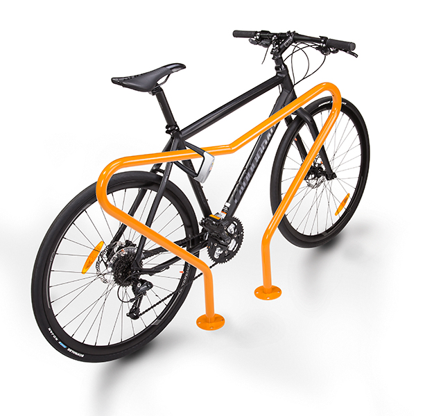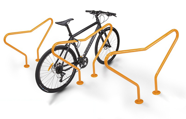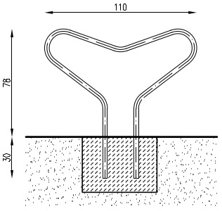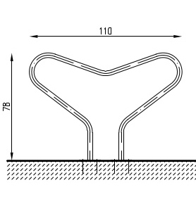 The form of the bicycle stand is made from the bent pipe. The stand may be used as an element of a large bicycle parking lot.