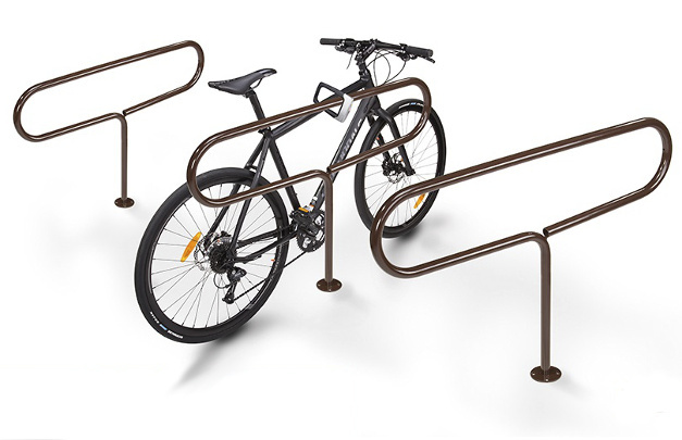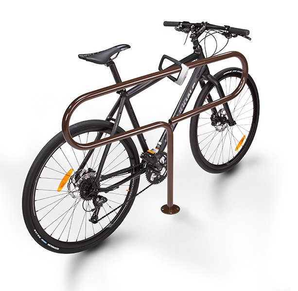 A classic model of bicycle stand, distinguished by simplicity of design and the option of locking to the bicycle's frame.