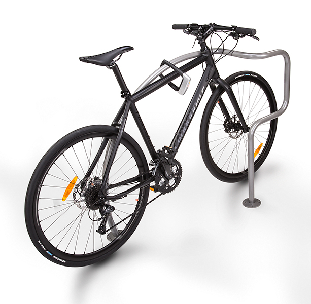 The presented stand attracts attention with its simple, smooth form of bent pipe.